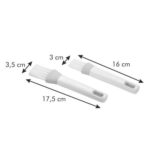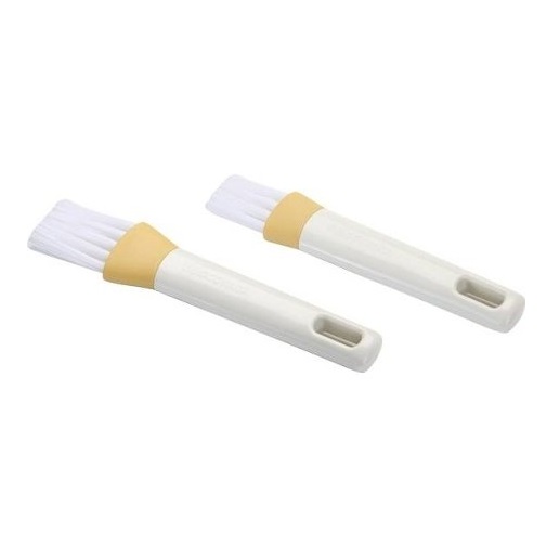 Pinceis de cozinha pequeno e grande excelentes para pincelar os alimentos com óleo, manteiga derretida, etc. enquanto cozinha no forno ou na grelha. O pincel de fibra de nylon flexível é resistente até 150ºC. Não expor directamente à chama, grelhas incasdescentes, etc. Pode ir à máquina de lavar louça.