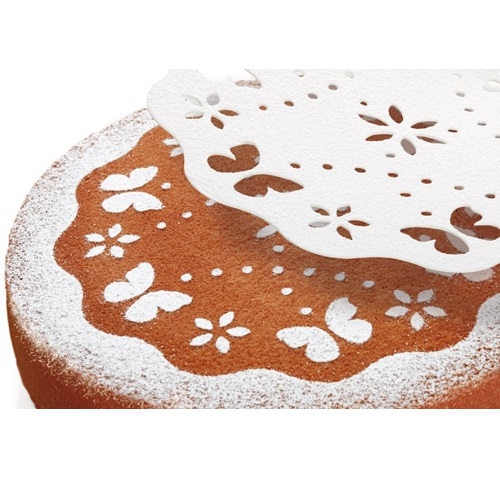 Moldes com motivos de Natal, Páscoa, Dia dos Namorados, Aniversário e Primavera, excelentes para decorar bolos e outras sobremesas redondas com açucar de pasteleiro, cacau, canela, etc. Fabricado em plástico resistente. Pode ir à máquina de lavar louça.