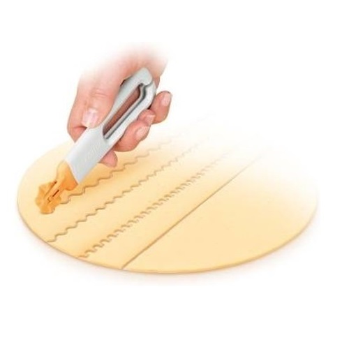 Corta massas com 4 excelentes cortadores substituíveis para cortar a massa em linha reta ou várias onduladas. Adequado para usar em todos os tipos de base de estender massa e formas. O corta massas não danifica a superfície. Fabricado em plástico resistente de excelente qualidade. Pode ir à máquina de lavar louça.