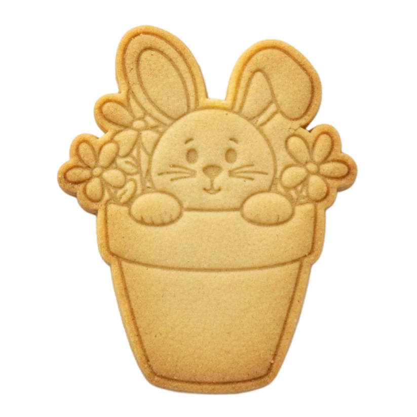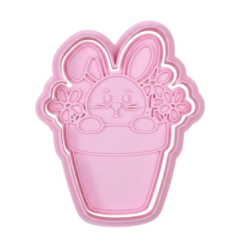 Cortador c/ Carimbo Coelho no Vaso com Flores