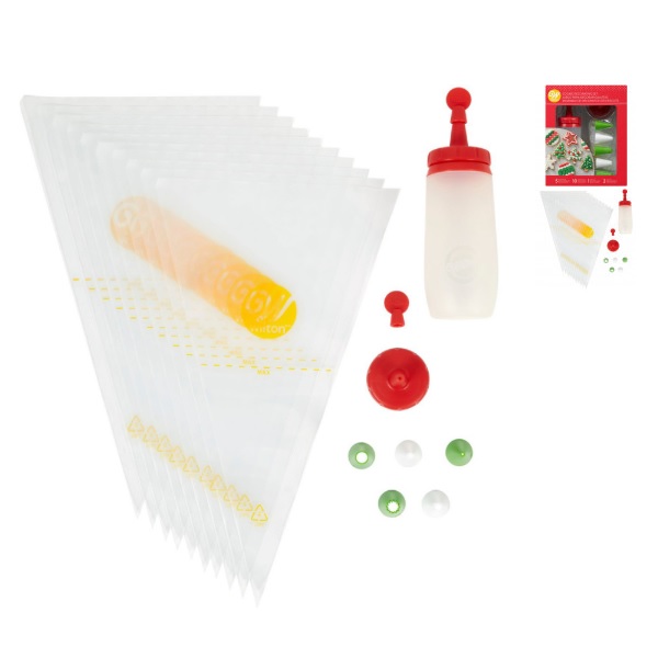 Home Bicos e Sacos de Pasteleiro Kit decoração Bolachas Wilton Kit decoração Bolachas Wilton 4 unidades em stock | SKU: 409-0-0011 15,90 € Desconto de %. IVA incluído. Comprar Contactar Adicionar à wishlist 5 boquilhas (#002, #012, #018, #005, #032) 10 sacos descartáveis 30cm 1 garrafa com 2 boquilhas