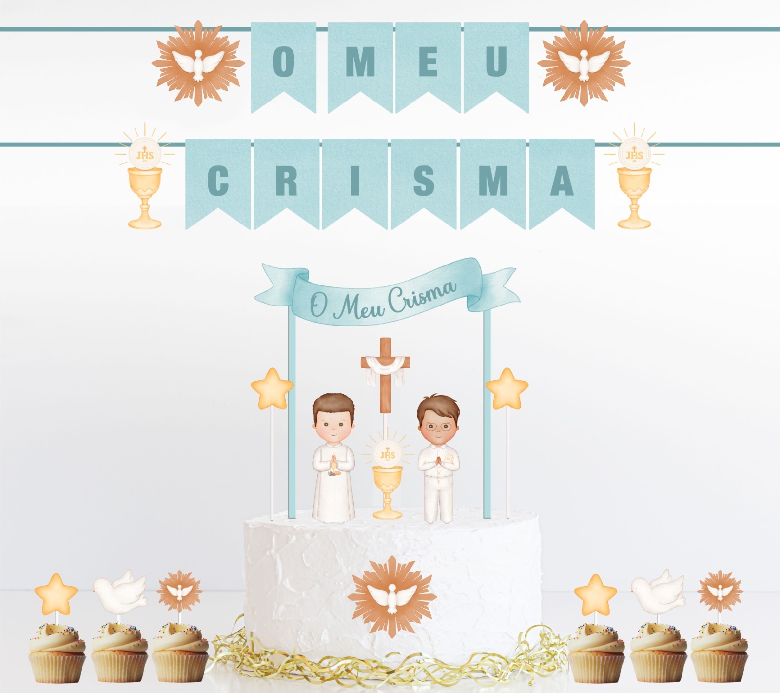 Home Topos de Bolo Religiosos Kit Decoração Crisma Menino Kit Decoração Crisma Menino 24,90 € Desconto de %. IVA incluído. Comprar Contactar Adicionar à wishlist Kit composto por: - Bandeirolas O meu Crisma; - Topo de bolo do tema (bandeira com palhinhas de papel e figura impressa em papel laminado com palito de plástico transparente); - Conj. 6 toppers do tema (figuras impressas em papel laminado com palitos de plástico transparente);