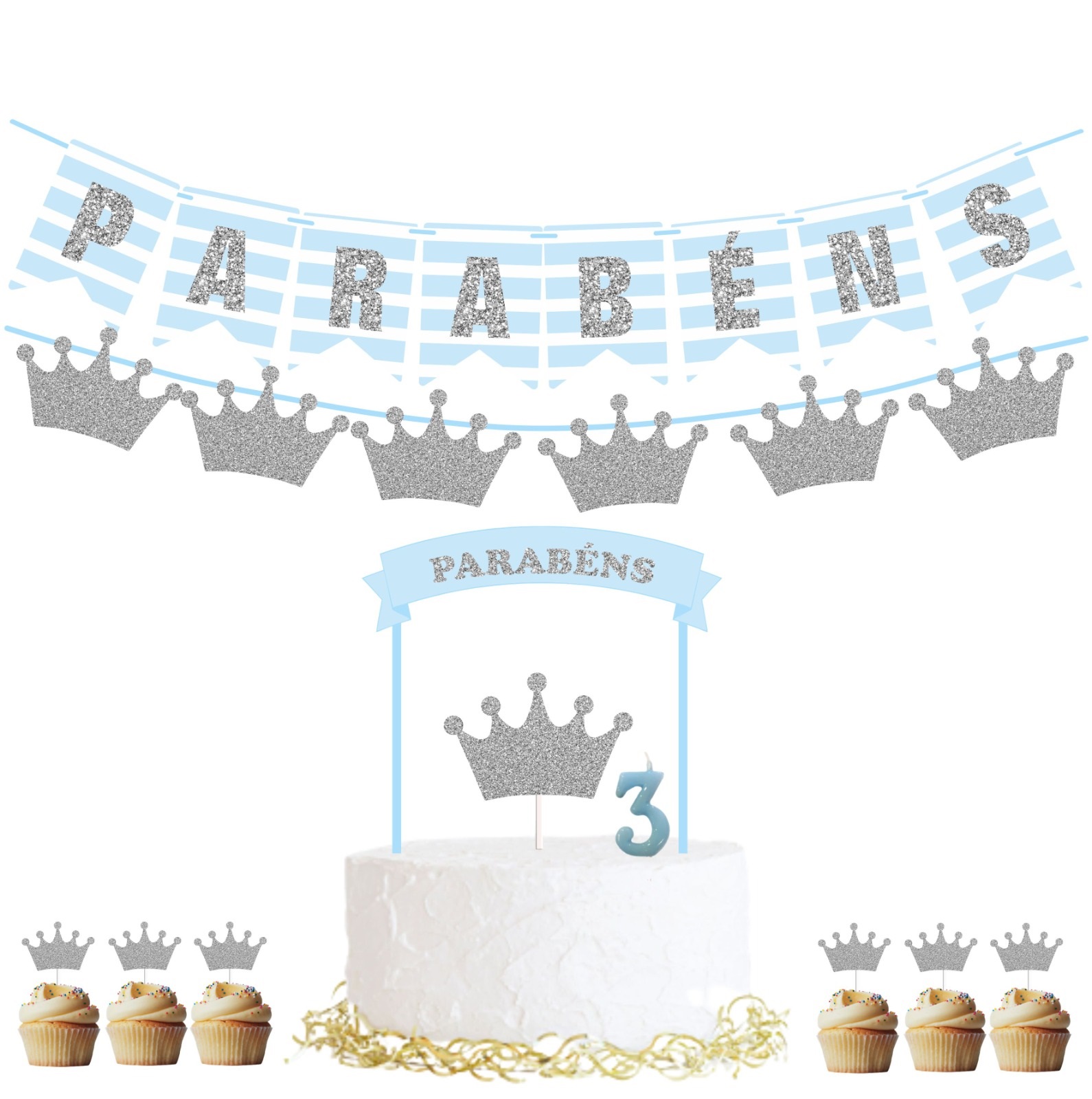 Home KIT FESTA Kit Festa Coroa Prateada Kit Festa Coroa Prateada 24,90 € Desconto de %. IVA incluído. Comprar Contactar Adicionar à wishlist Kit composto por: - Bandeirolas Parabéns; - Grinalda com figuras do tema; - Topo de bolo do tema (bandeira com palhinhas de papel e figura impressa em papel laminado com palito de plástico transparente); - Conj. 6 toppers do tema (figuras impressas em papel laminado com palitos de plástico transparente); - Vela (Atenção: Deverá indicar a idade no final da encomenda, no campo "observações").