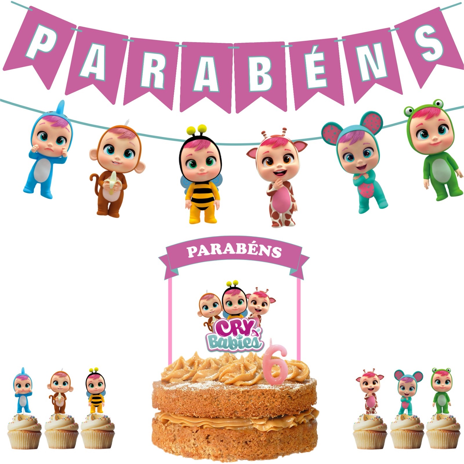 Home KIT FESTA Kit Festa Cry Babies Rosa Kit Festa Cry Babies Rosa 24,90 € Desconto de %. IVA incluído. Comprar Contactar Adicionar à wishlist Kit composto por: - Bandeirolas Parabéns; - Grinalda com figuras do tema; - Topo de bolo do tema (bandeira com palhinhas de papel e figura impressa em papel laminado com palito de plástico transparente); - Conj. 6 toppers do tema (figuras impressas em papel laminado com palitos de plástico transparente); - Vela (Atenção: Deverá indicar a idade no final da encomenda, no campo "observações").