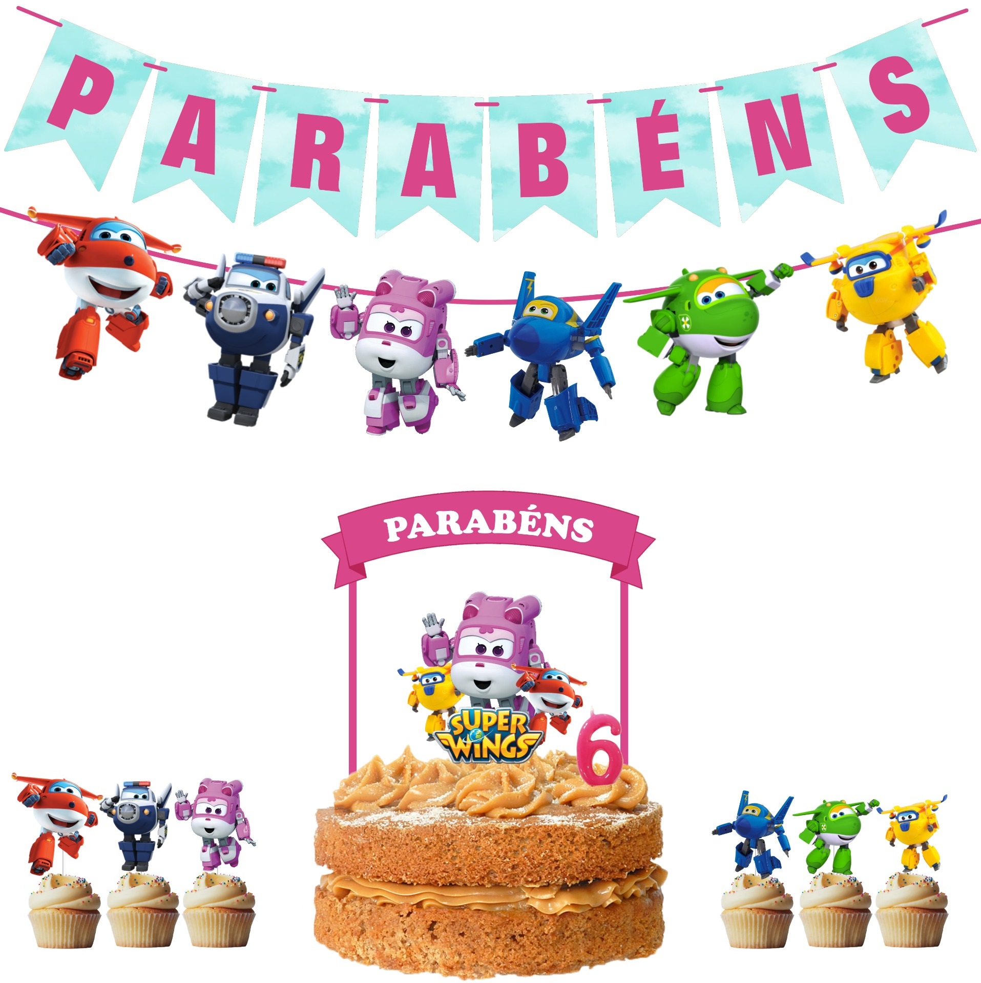 Home KIT FESTA Kit Festa Super Wings Rosa Kit Festa Super Wings Rosa 24,90 € Desconto de %. IVA incluído. Comprar Contactar Adicionar à wishlist Kit composto por: - Bandeirolas Parabéns; - Grinalda com figuras do tema; - Topo de bolo do tema (bandeira com palhinhas de papel e figura impressa em papel laminado com palito de plástico transparente); - Conj. 6 toppers do tema (figuras impressas em papel laminado com palitos de plástico transparente); - Vela (Atenção: Deverá indicar a idade no final da encomenda, no campo "observações").