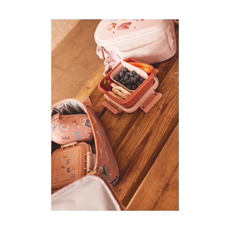 As lancheiras de pequeno almoço tamanho grande da nova coleção Back to School 2025 são perfeitas para levar snacks ao parque ou o pequeno almoço para a escola. Decoradas com uma bonita ilustração na tampa, fecham-se facilmente para que os mais pequenos possam abri-las sem problema. Além disso, incluem um separador interior amovível para que possas organizar os alimentos no seu interior.