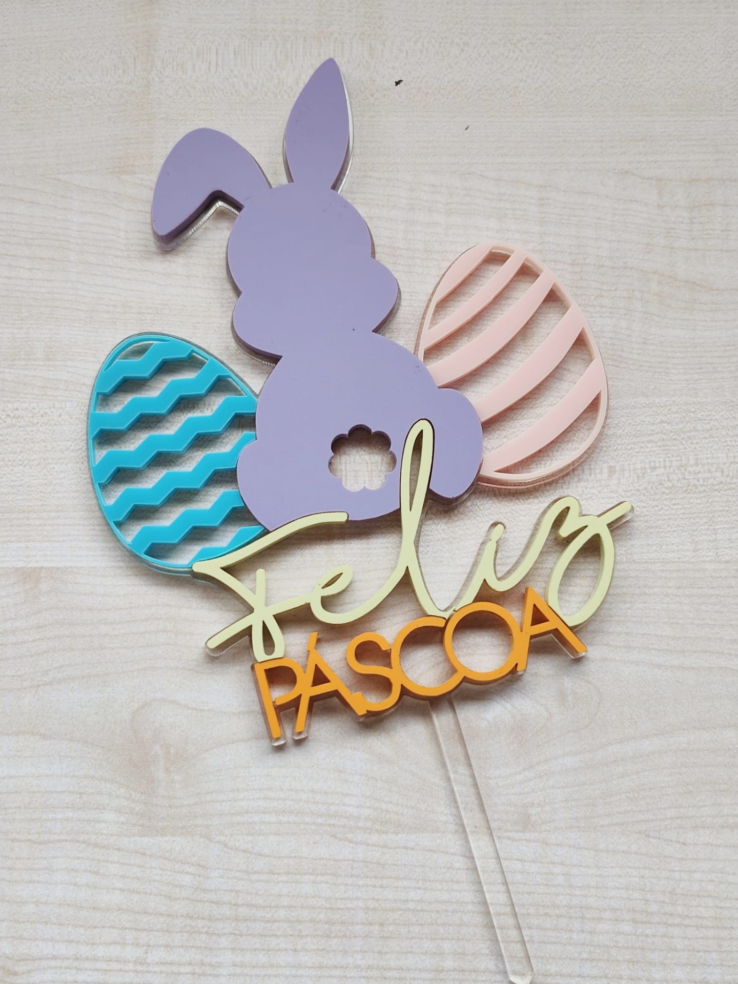 Home Páscoa - Doces e Pastelaria Topo Bolo Feliz Páscoa Cores Pastel Topo Bolo Feliz Páscoa Cores Pastel 9,90 € Desconto de %. IVA incluído. Comprar Contactar Adicionar à wishlist Topo de bolo com base em acrilico transparente e sobreposição de acrilicos cores pastel. Tamanho aprox. 19 X 11cm.