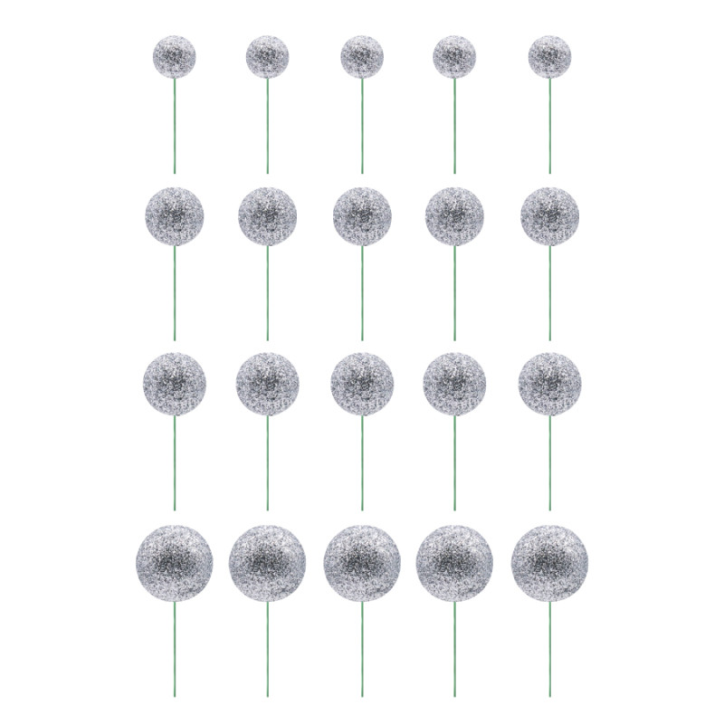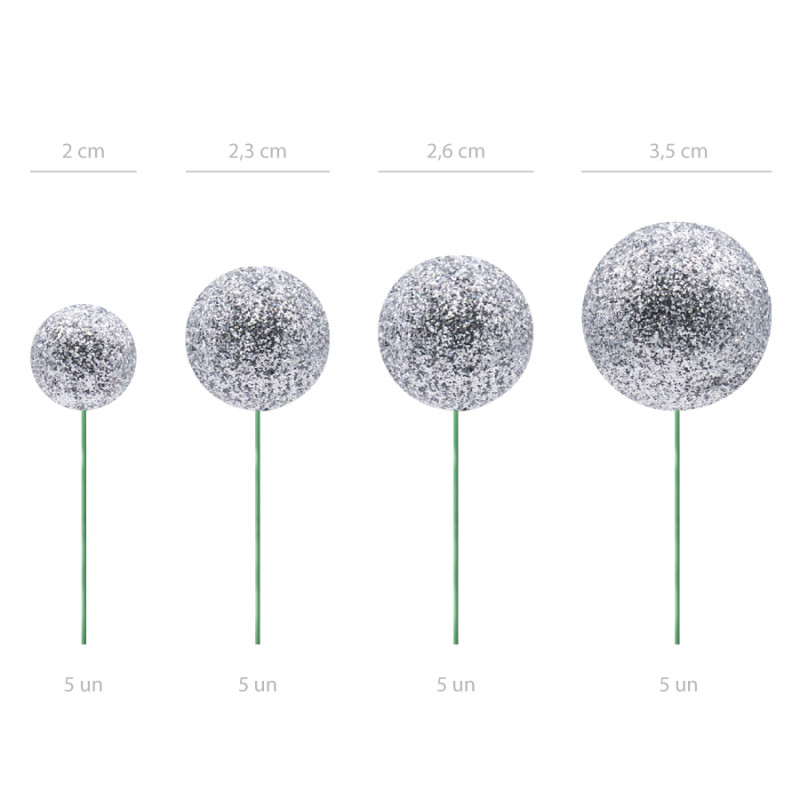 Toppers Bolas Glitter Prata - conj.20
